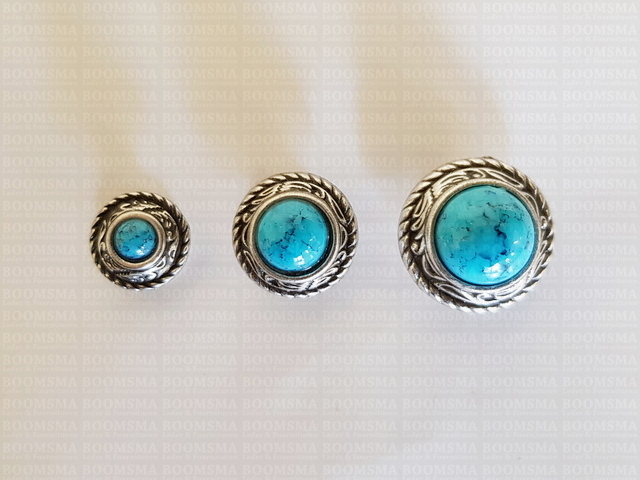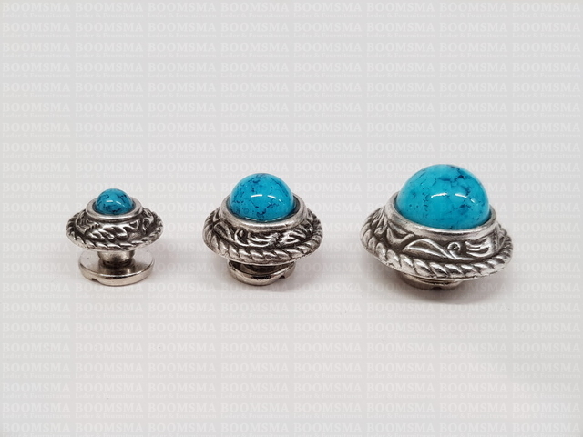 Titel | Concho: Concho Ted met turquoise 'steen' 20 mm (3/4'' inch) groot (12 mm steen) |
