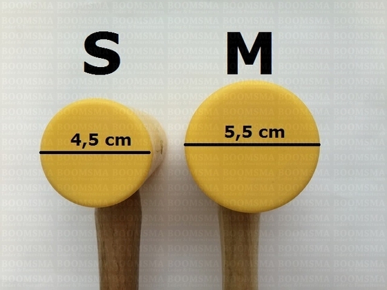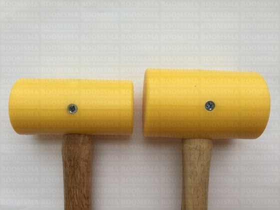 Poly uit auto-industrie, deze hamers hebben een goede schokabsorptie en kunnen slijtage tijdens gebruik verminderen (denk hierbij aan ijzeren slagstempels). Deze hamer is goed te gebruiken voor de figuurstempels.