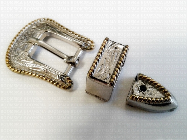 Smalle gespen en gespensets voor aan een band van een western hoed. Voor een breedte riempje van 1 cm.