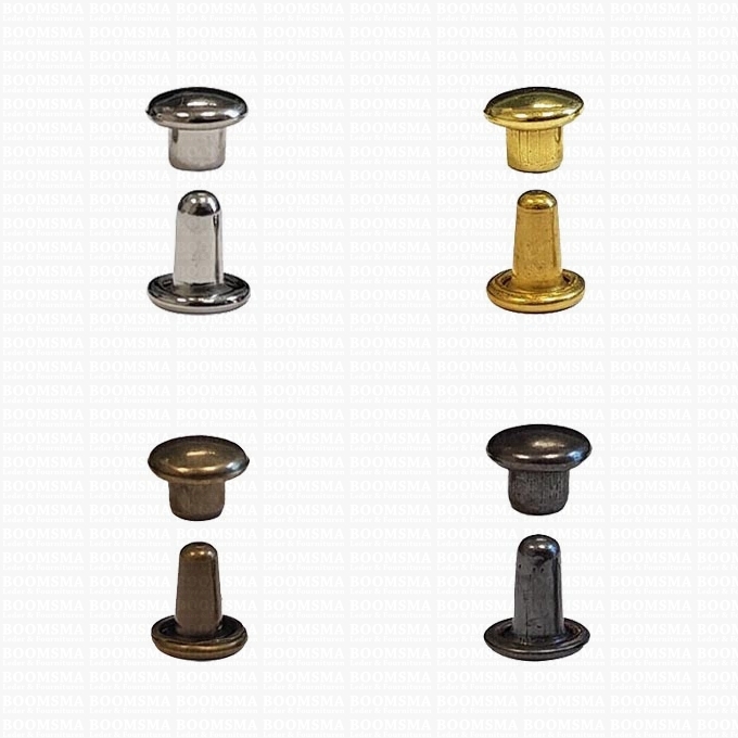 Deze holnieten met dubbele kop worden veelal gebruikt voor het bevestigen van lederen delen op elkaar. (bijv. leren labels op een tas.)