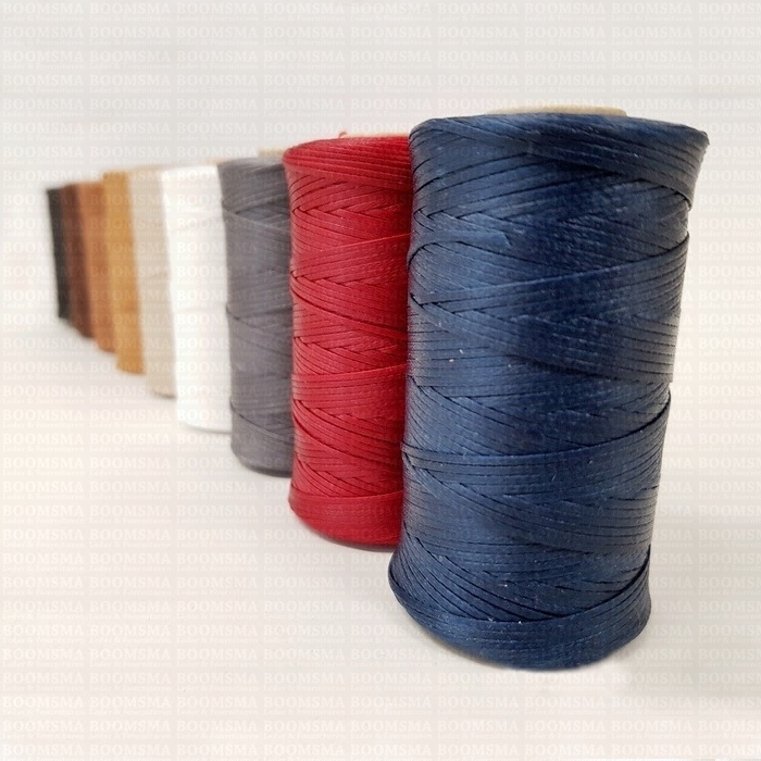 Sterk garen voor handnaaien. Dit garen is al gewaxed en daardoor klaar voor gebruik. 1.0 mm dik garen.